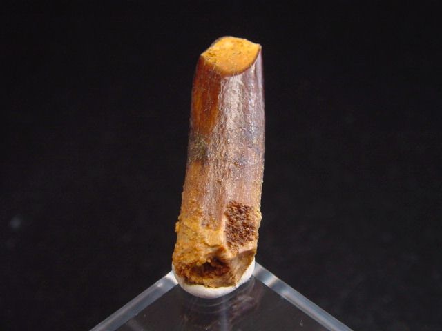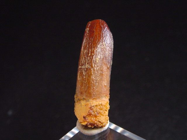 Dieses sehr seltene Exemplar eines Zahnes von Rebbachisaurus garasbae stammt aus Marokko. Das Alter beträgt ca. 100 Millionen Jahre - keine Replik! Die Bilder zeigen den Zahn von Vorder- und Rückseite.
