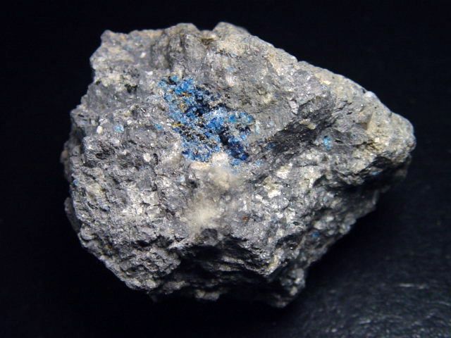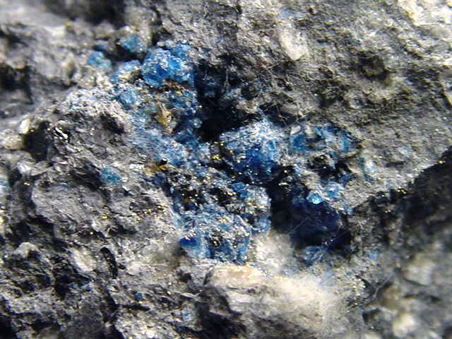 Stufe mit intensiv blauem Hauyn reich in vulkanischem Matrixgestein. Seltene Sammlerstufe aus der Eifel, Deutschland.