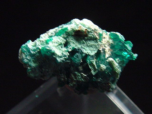 Dioptas Stufe als glitzernder Kristallrasen reich auf Matrix. Sammlerstufe aus Tsumeb, Namibia.