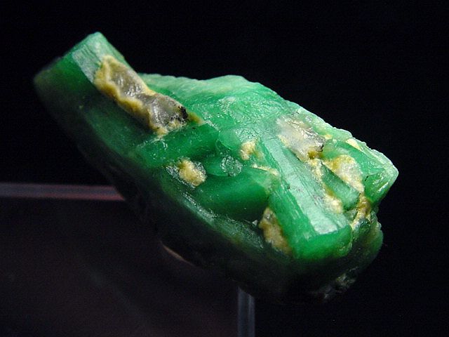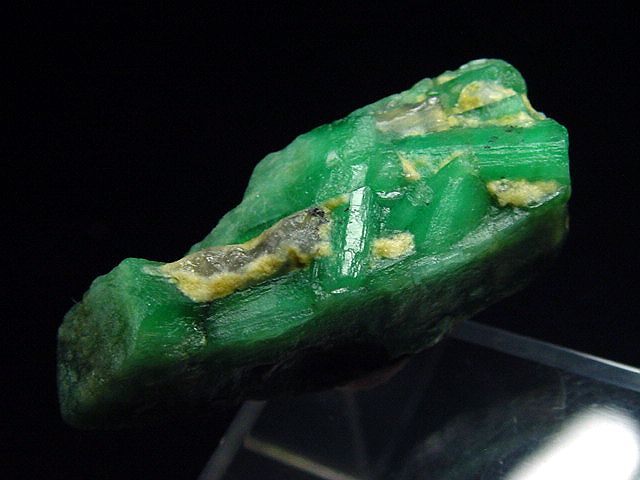 Smaragd Stufe mit mehreren säulenförmigen sehr gut ausgebildeten Smaragd Kristallen. Die Smaragde sind von leuchtendgrüner Farbe und teilweise in Schleifqualität. Ästhetische Sammlerstufe aus Nova Era, Brasilien.