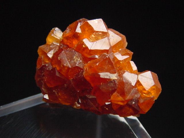 Reiche Spessartitstufe mit einer Vielzahl klarer, perfekt ausgebildeter Spessartitkristalle. Schöne Sammlerstufe aus Tongbei, China.