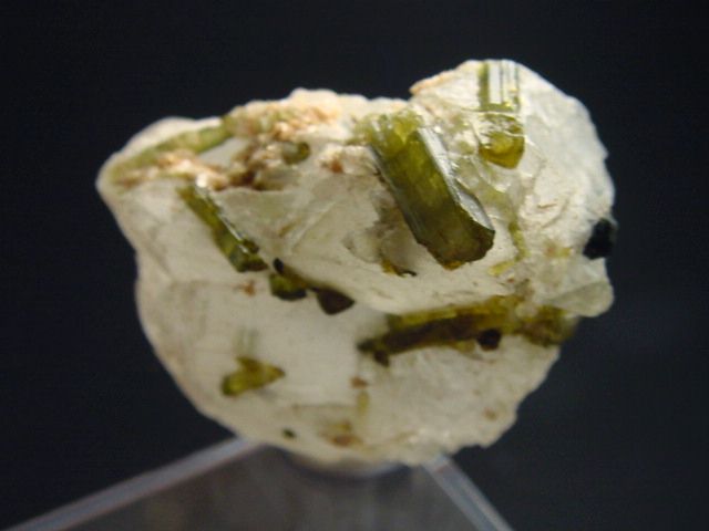 Verdelith Turmalin in länglichen gut ausgebildeten Kristallen und von schöner Farbe in Quarz - ebenso reiche wie ästhetische Sammlerstufe aus Minas Gerais, Brasilien.