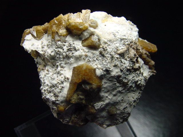 Gut ausgebildete Kristalle von Vesuvianit reich in Matrixgestein. Sammlerstufe aus Sierra de Cruces, Mexiko.