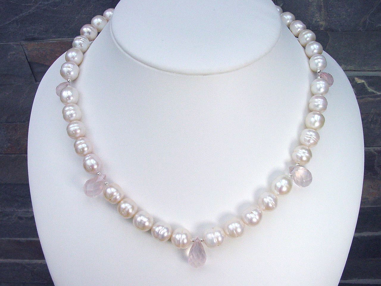 Barockperlenkette 325,30 Ct. mit facettierten Rosenquarz Briolette Tropfen 47 - 50,5 cm