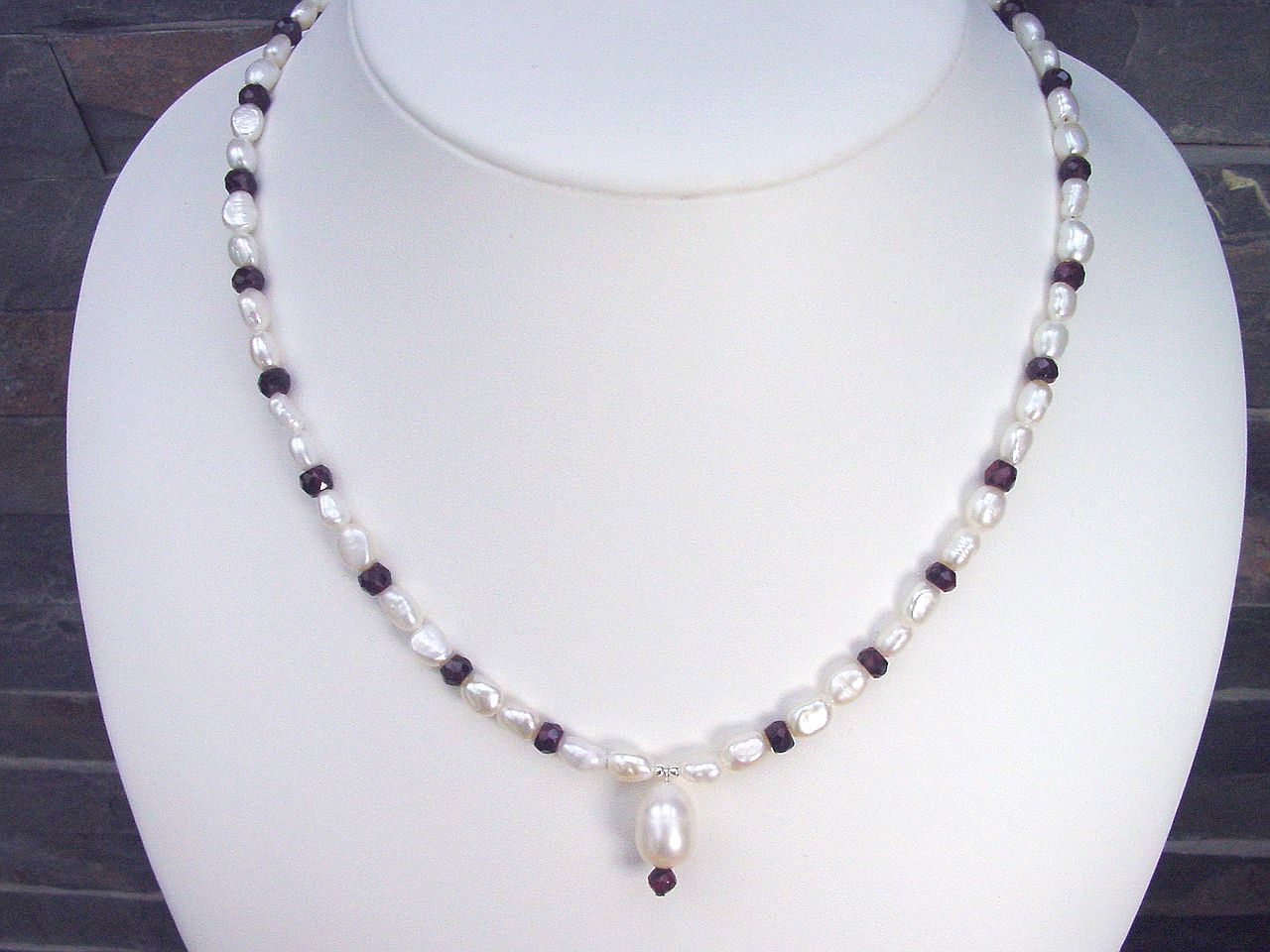 Barockperlenkette 96,80 Ct. mit fein facettiertem Granat 46 - 49 cm