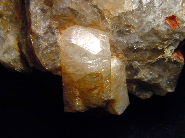 Phenakit Kristalle auf Quarz, davon ein Phenakit außergewöhnlich groß und schön mit klarer Spitze - sehr ästhetische Sammlerstufe dieses seltenen Minerals aus Fianarantsoa, Antsirabe, Madagaskar.