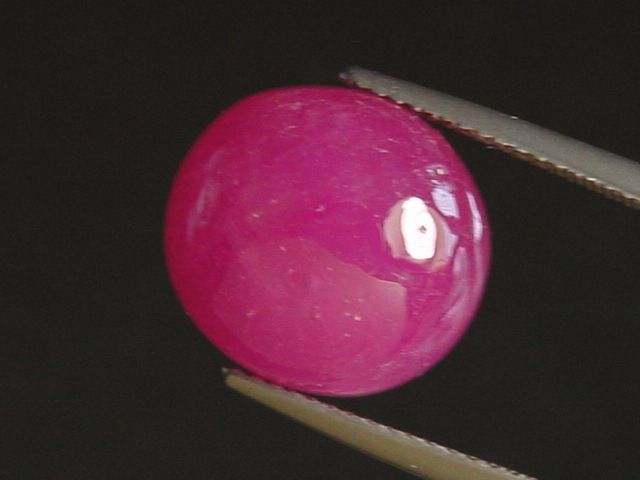 Echter, behandelter Rubin aus Madagaskar. Kleine natürliche Hohlräume im Rubin wurden im Vakuum mit Glas aufgefüllt - der Rubin zeigt dadurch dauerhaft eine bessere Reinheit und Farbe. Diese bei Rubinen häufig angewandte Behandlungsmethode ist nur unter dem Mikroskop für den Fachmann sichtbar. Ein echter Rubin mit phantastischer Farbe.