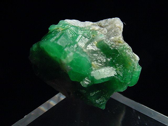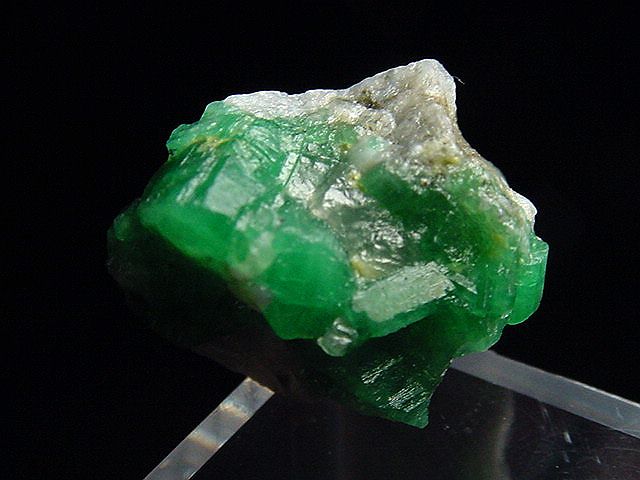 Smaragd Stufe mit mehreren säulenförmigen sehr gut ausgebildeten Smaragd Kristallen. Die Smaragde sind von leuchtendgrüner Farbe und teilweise in Schleifqualität. Ästhetische Sammlerstufe aus Nova Era, Brasilien.
