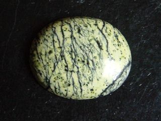 Dark green Nephrite veins in their natural matrix stone, a pastel green Serpentinite. Cabochon cut, like this piece, a very decorative gem for jewelry or the collection.