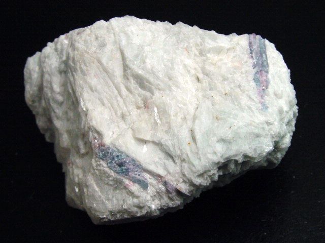 Copper bearing Paraiba Tourmaline specimen (also called Cupro Elbaite) together with red Rubellite Tourmaline. This piece is from an old find - the mines for this very rare Tourmaline in Brazil seems to have been exploited. Rare collector specimen from Brazil.