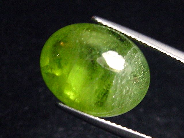 Cabochon cut Peridot with intense color from Sri Lanka.
